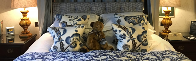 We experienced the ‘Four Poster Dragonfly’ room. The room was a true delight and quintessentially British in every way, perfectly capturing the essence of the surrounding area. The room had an array of lush fabrics and Regal British blues, Persian rug’s, and of course the focal point of the room was the magnificent four poster bed.