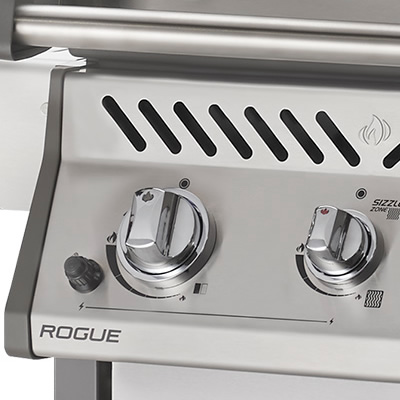 The Rogue 365 offers two burners, and the addition of a warming rack and an infrared side burner which creates up to 545 square inches of cooking space. The infrared side burner is a real highlight, being perfect for searing meat or seafood to restaurant quality – we surprised ourselves by how well we were able to cook on this barbeque. Napoleon even have their own uniquely shaped cooking grids, meaning you’ll know if you’re served a meal from one of these grills purely by the distinctive sear marks; a very clever marketing initiative.