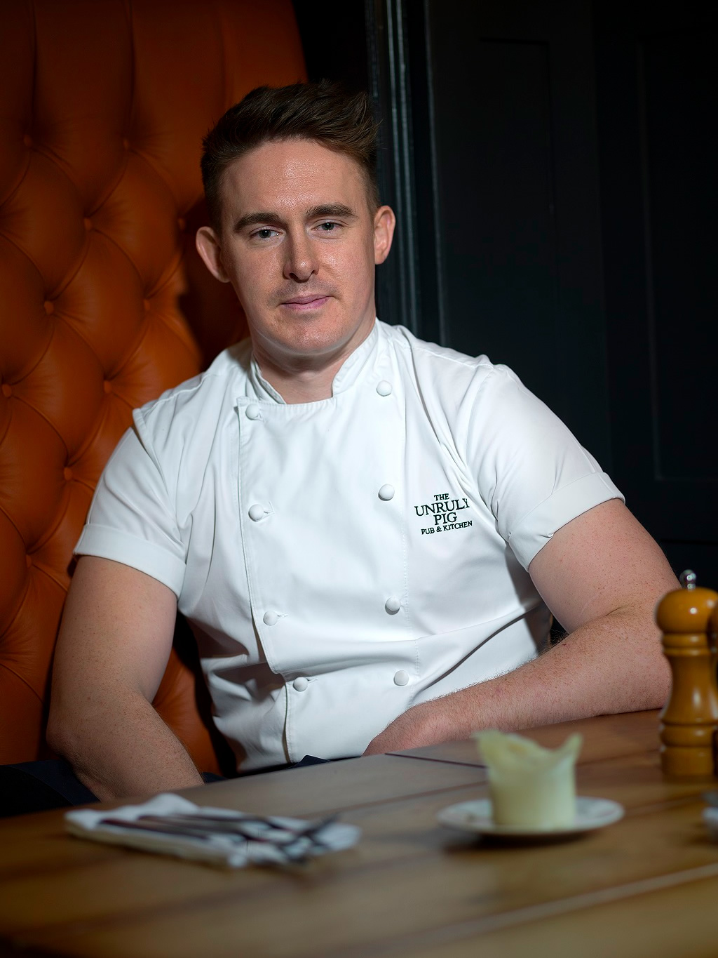 Celebrated head chef Dave Wall (ex-Bibendum, The Boxwood Café with Gordon Ramsay and Le Talbooth), leads the talented team at the stove at The Unruly Pig, Suffolk.